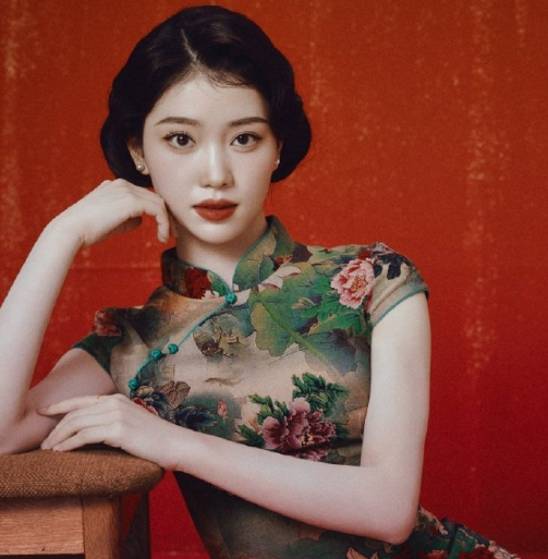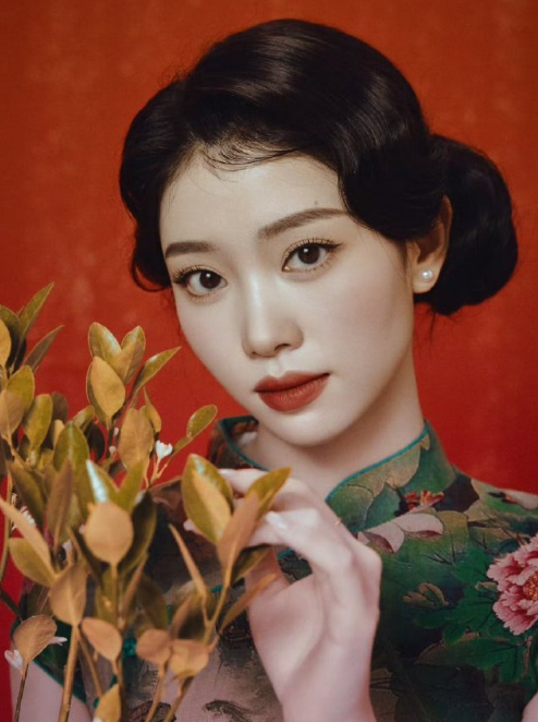 沈小婷的荷花旗袍,超复古的感觉,喜欢!